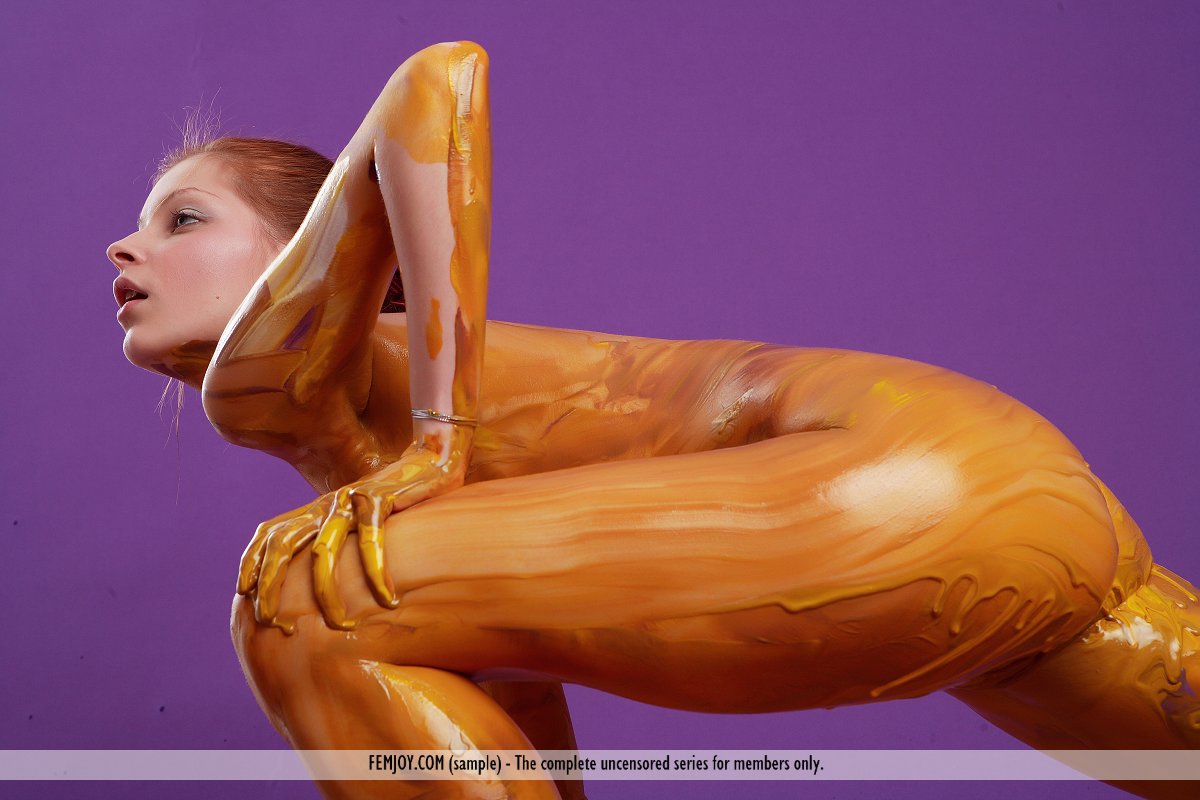 whats best about this set is the poses that this paint drives angelina b. To. As if sensing that the paint is perhaps getting into places not normally visited, she opens up to air out, and we get to see it all. What a vision! its a living masterpiece, and were invited into its creation.