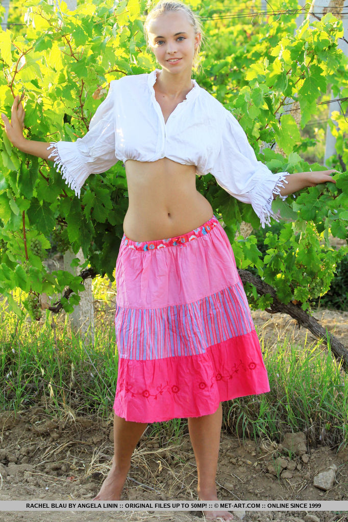 Rachel blau playfully strips off her gypsy dress to showcase her beautiful, puffy breasts, pink pussy, and petite figure.