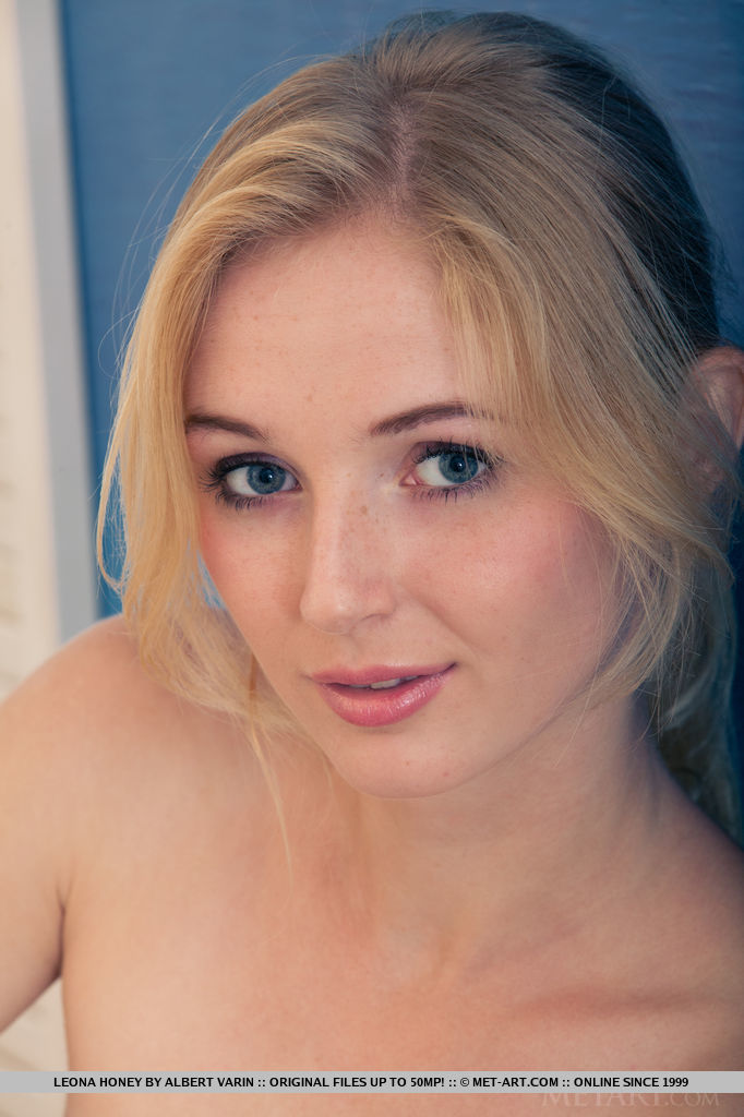 Leona honey bares her slender, naked body with pink nipples and smooth pussy as she poses on the chair.