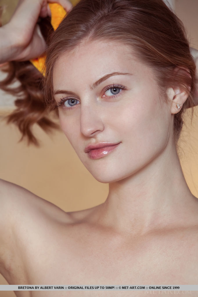 Bretona strips baring her slender body with creamy white skin, round ass and delectable pussy as she poses in front of the camera.